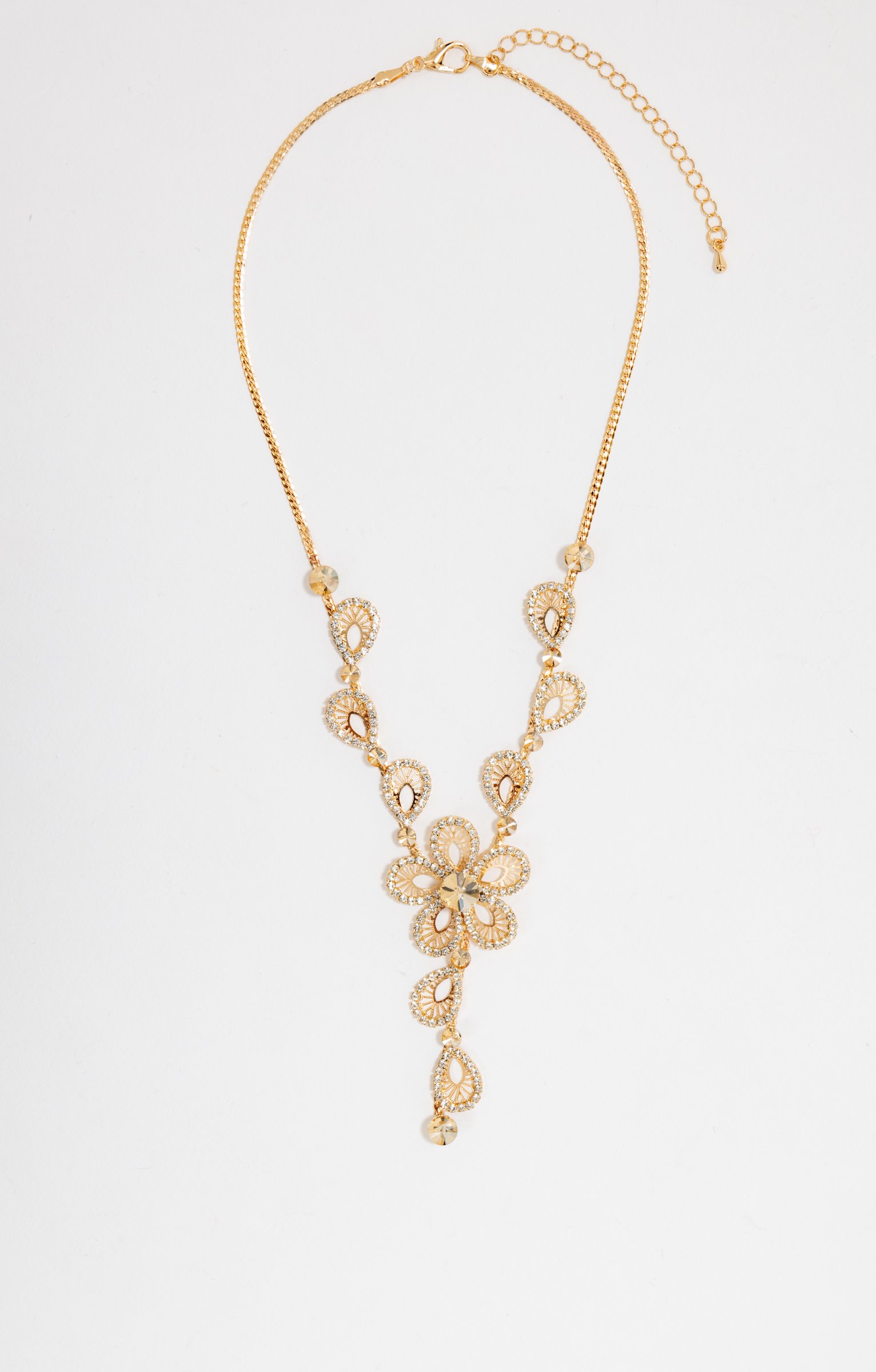 Collier ras-de-cou avec pendentif fleur. Forme ras-de-cou. Chaine en fine maille. Pendentif en relief en forme fleur. Cœur formé par une perle. Feuilles en prolongation de la fleur et le long du collier. Portez ce collier avec une robe décolletée pour le mettre en valeur.