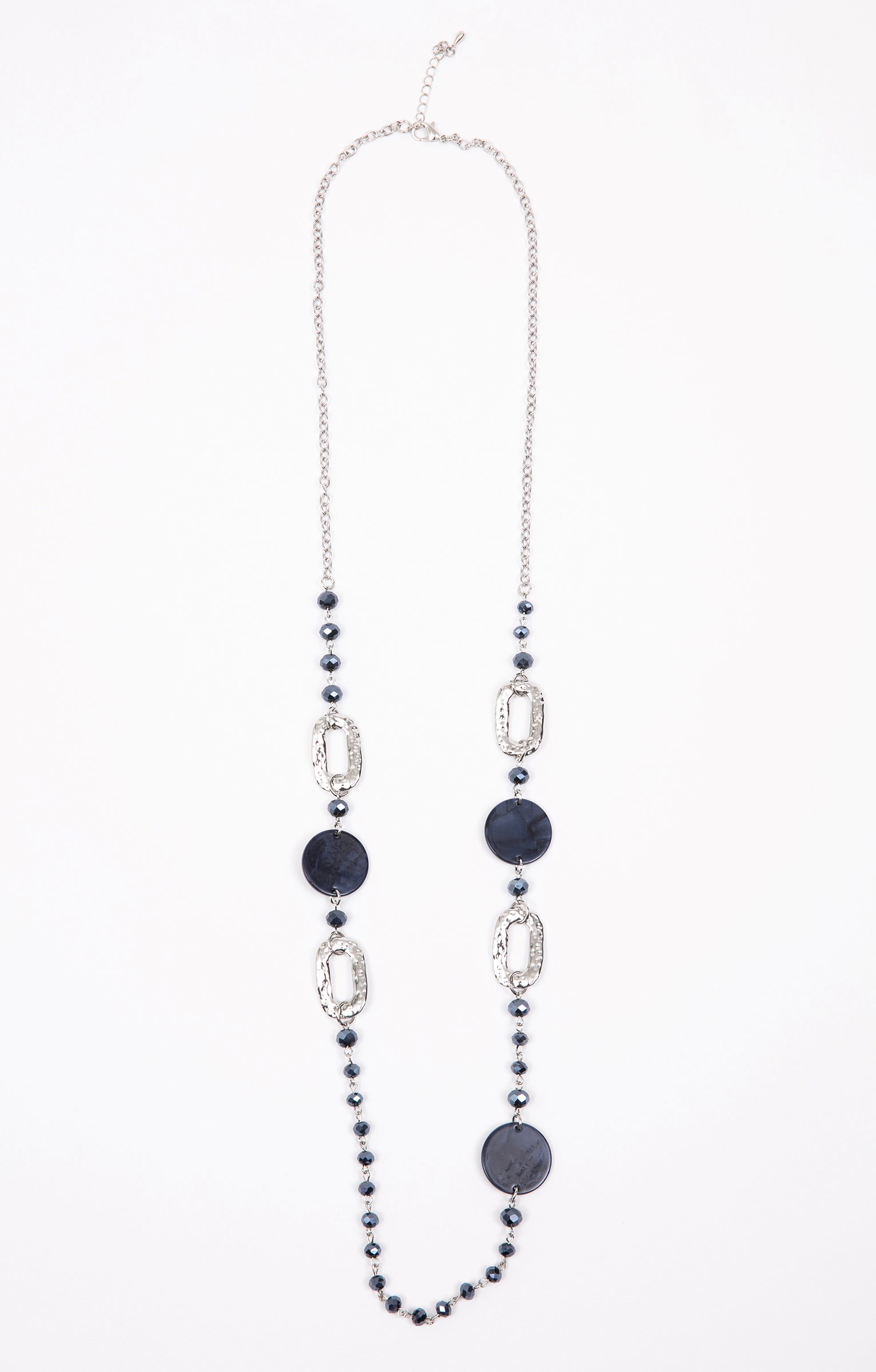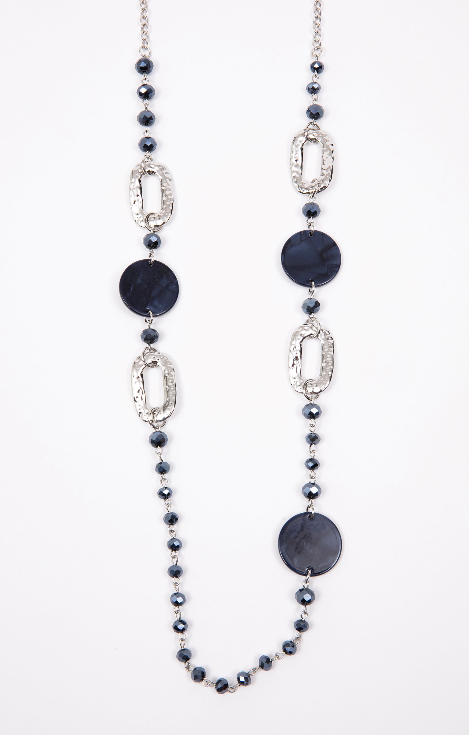 Sautoir argenté marine anneaux perles -