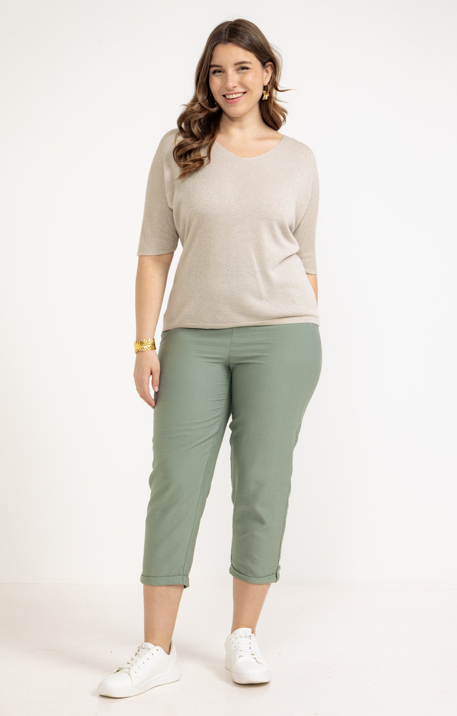 Notre mannequin Beatrice mesure 1m77 et porte un pantalon taille 1.
