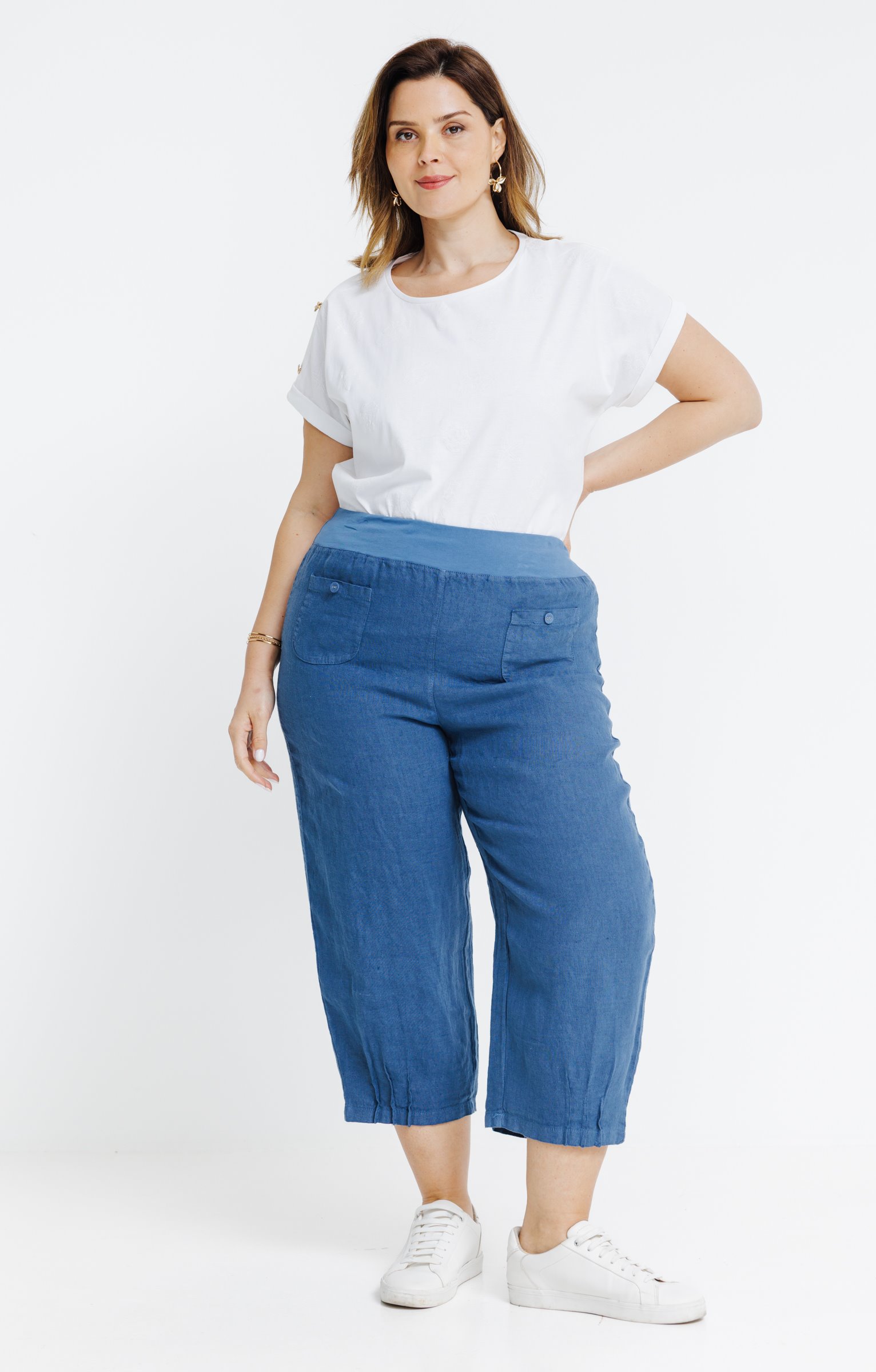 Pantacourt en lin avec poches -