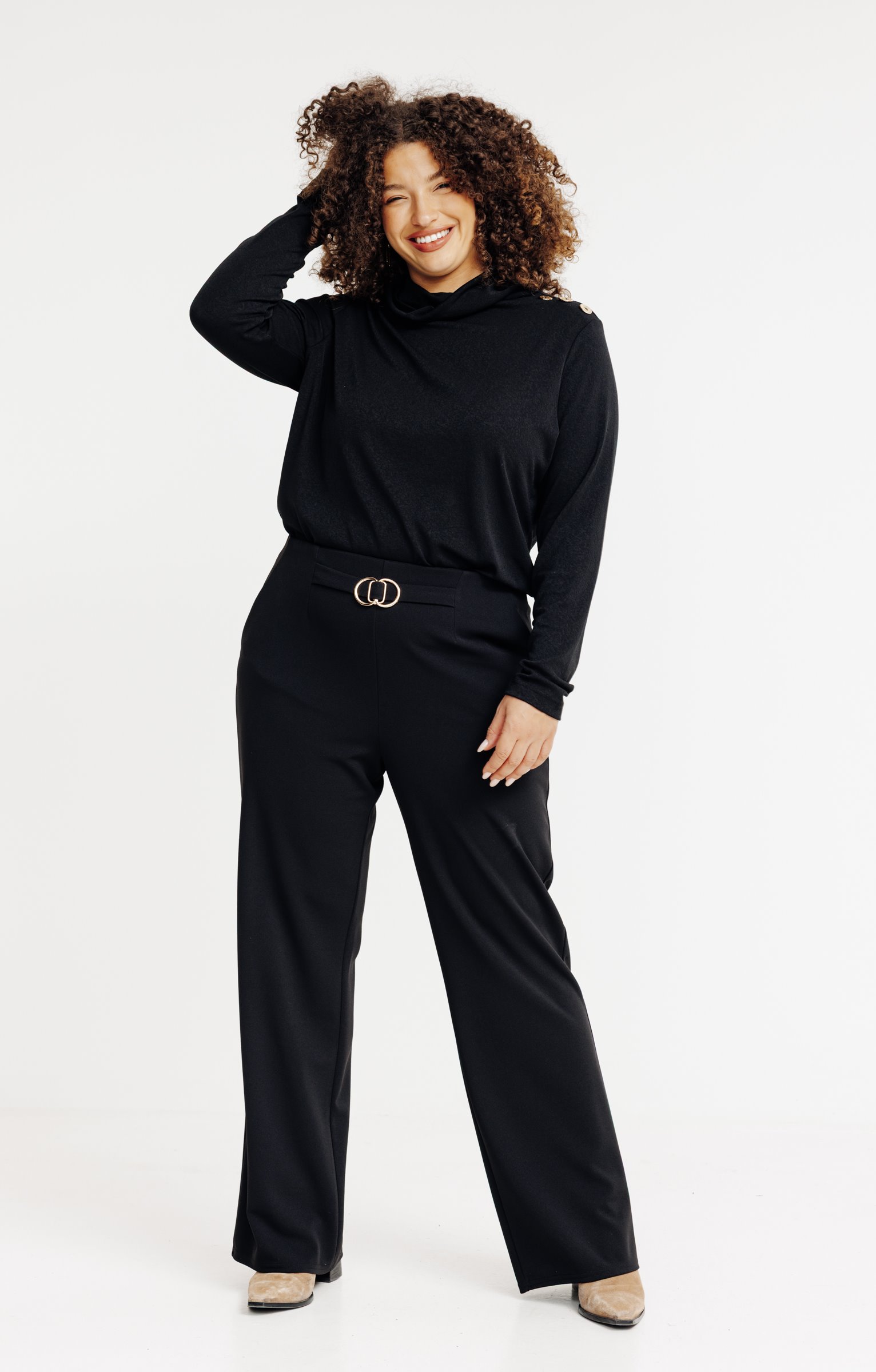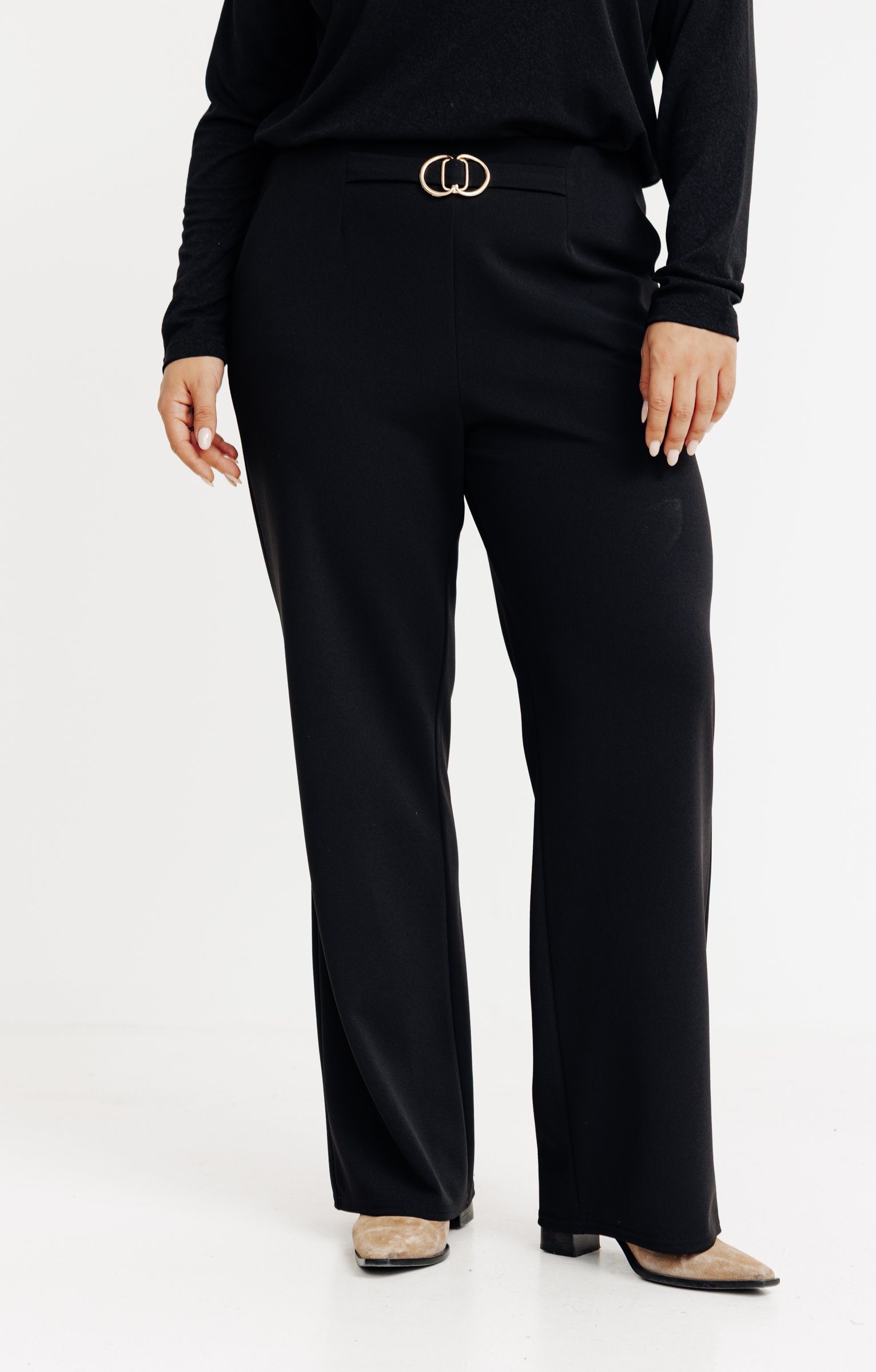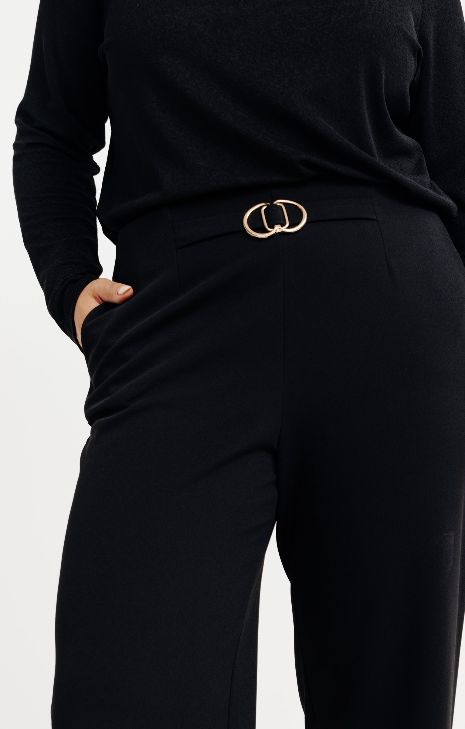 Pantalon large uni à boucle -