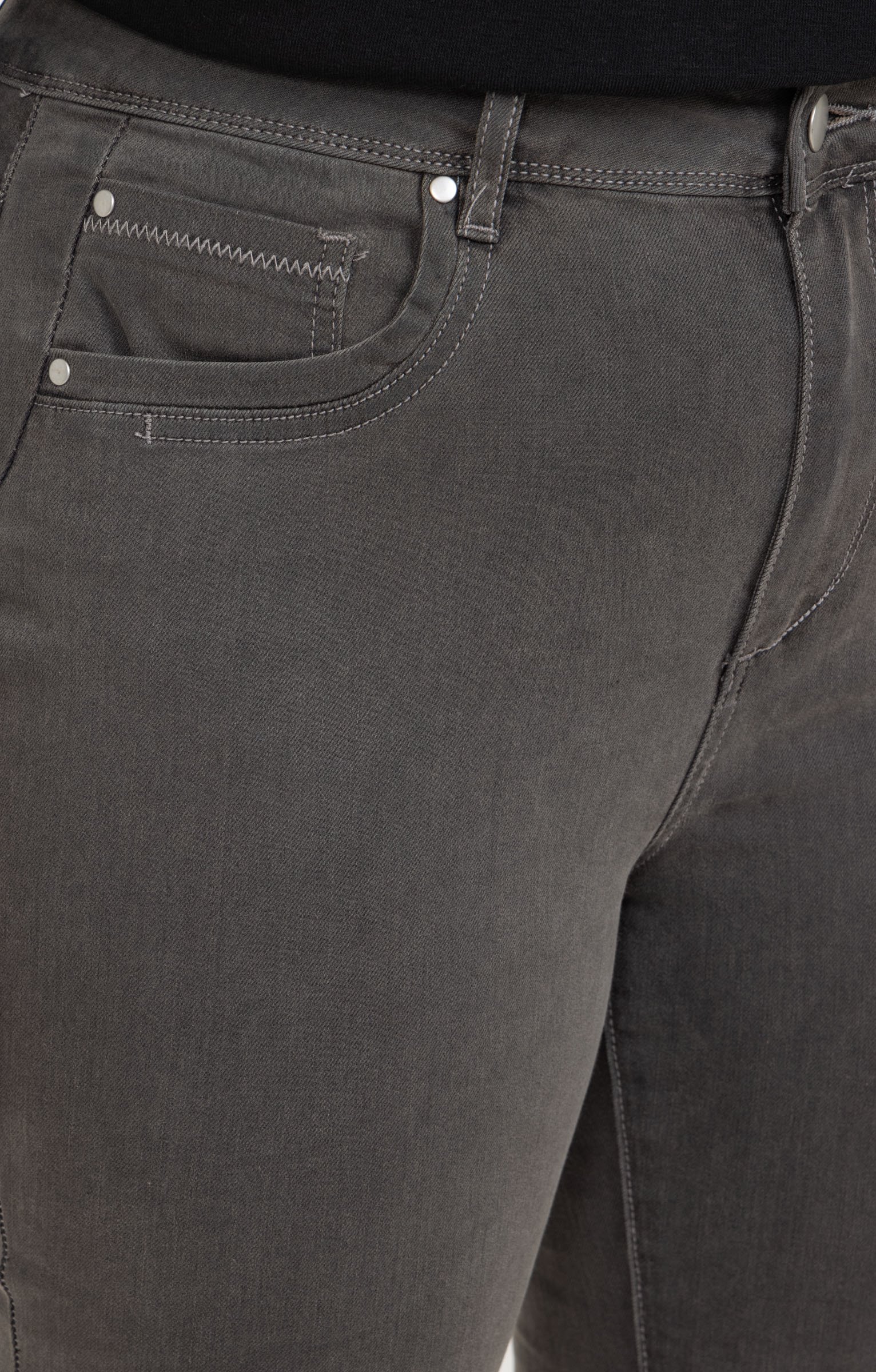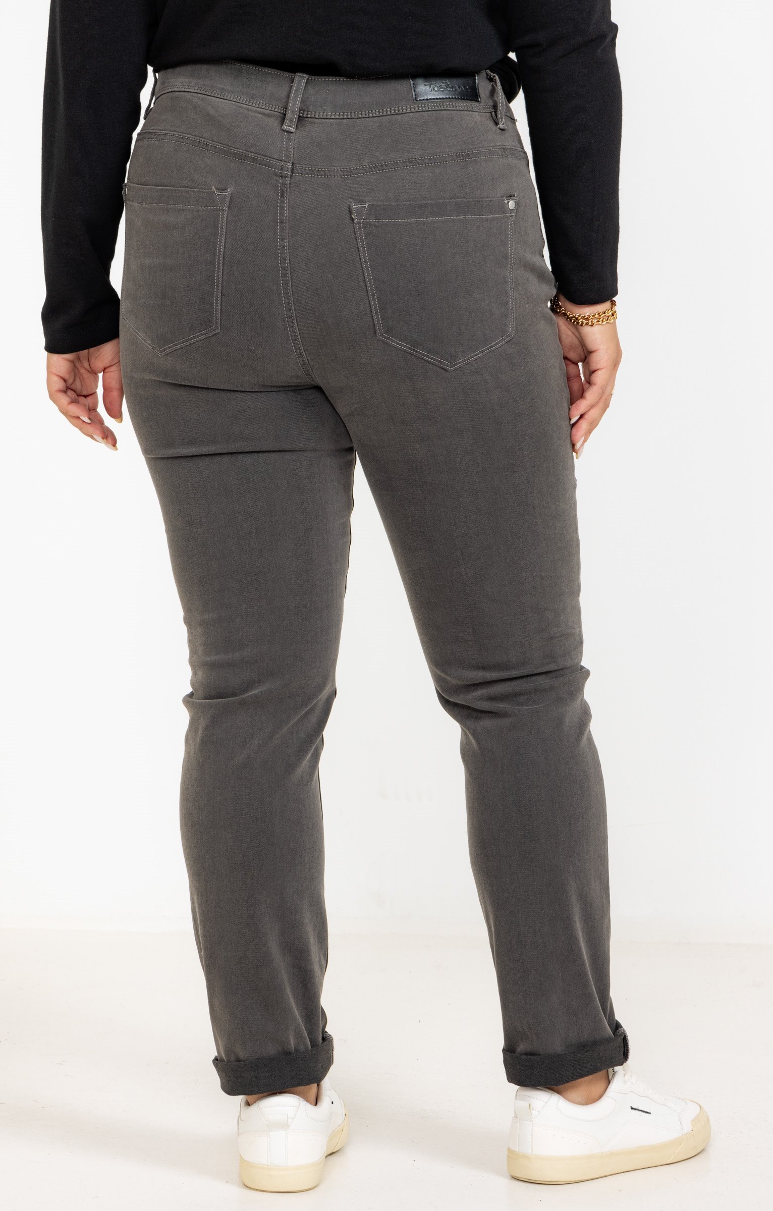 Pantalon uni ajusté 5 poches. Coupe ajustée. Fermeture boutonnée et zippée. 2 poches cavalières et une poche ticket devant, 2 poches plaquées au dos. Teinte unie. Toile extensible. Passants pour ceinture. Jacron siglé aspect cuir contrasté au dos de la taille. Poches rivetées. Surpiqûres contrastées.