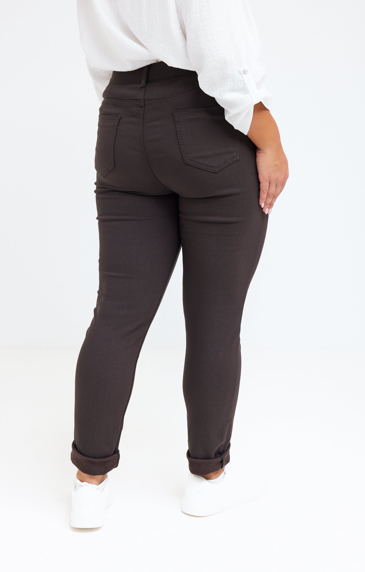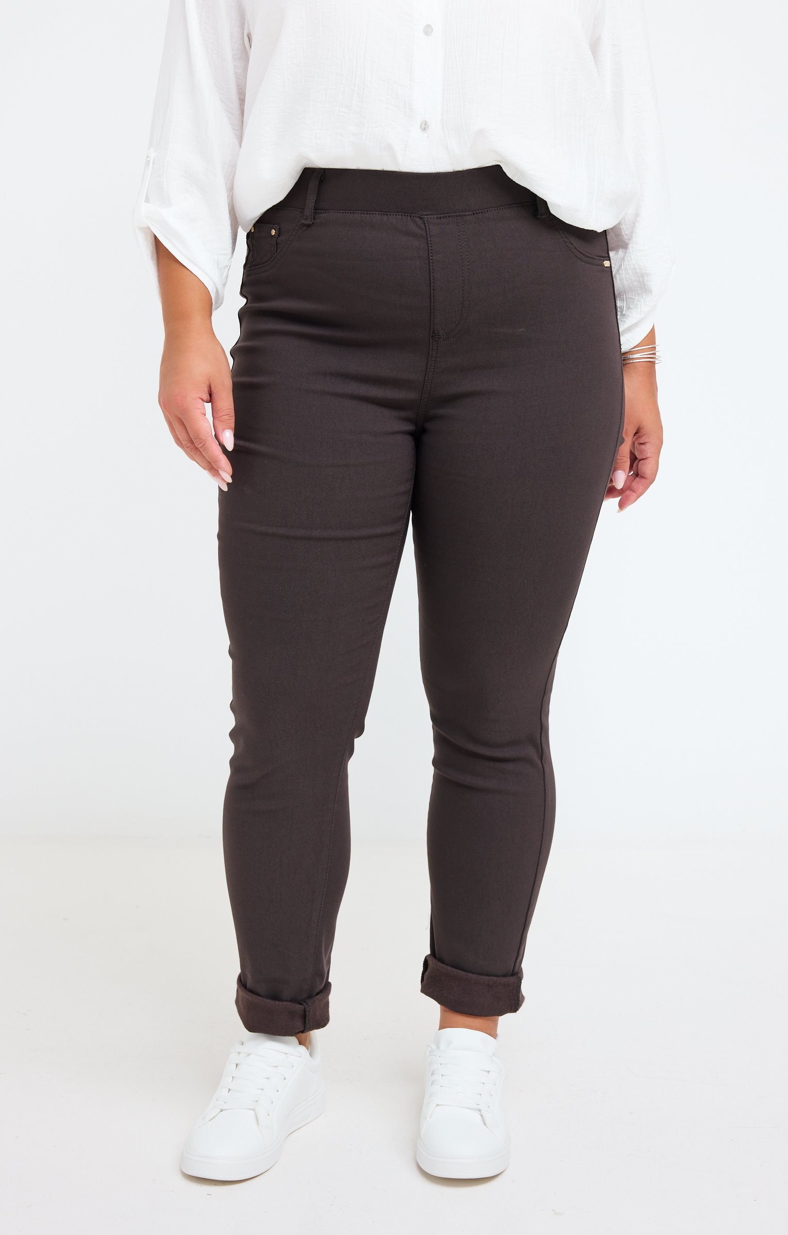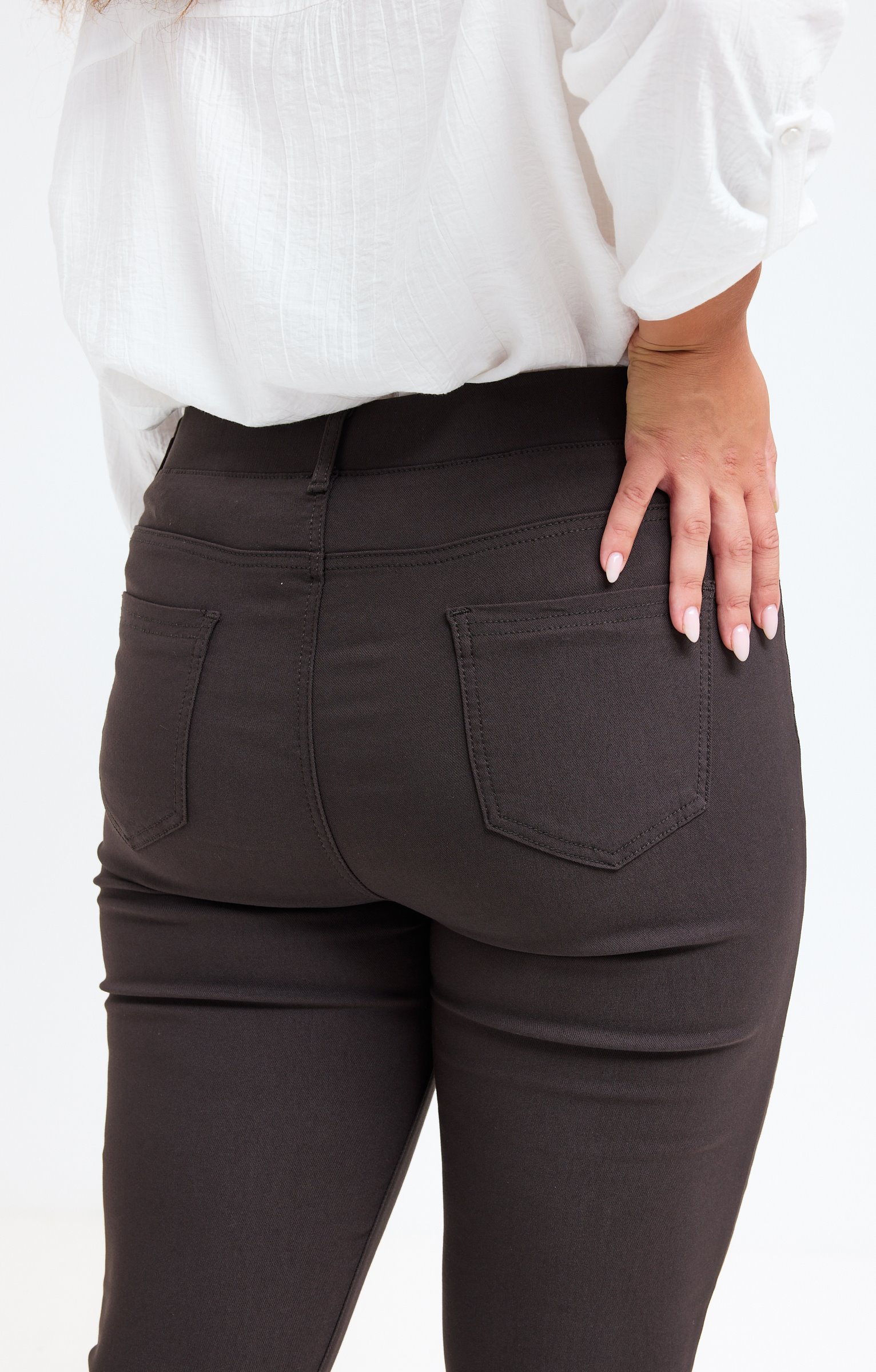 Tregging uni avec détails rivets. Coupe slim. Longueur longue. Fausse fermeture zippée sous bord avec large ceinture élastiquée. 2 fausses poches cavalières et une poche ticket devant. 2 poches plaquées au dos. Coloris uni. Tissu façon denim. Matière extensible. Détails rivets sur la poche ticket. Passants pour ceinture. Surpiqûres ton sur ton en finition du modèle.