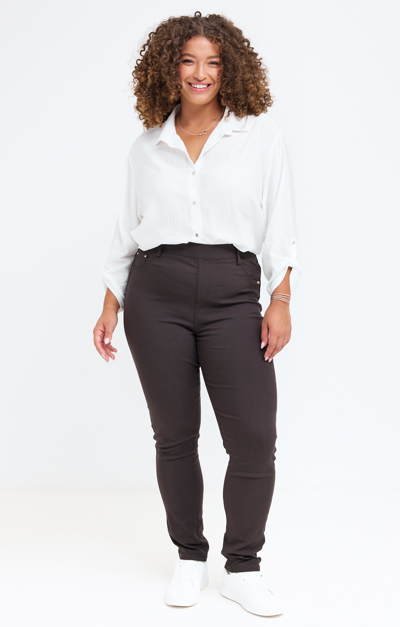 Notre mannequin Delia mesure 1m71 et porte un tregging taille 1.