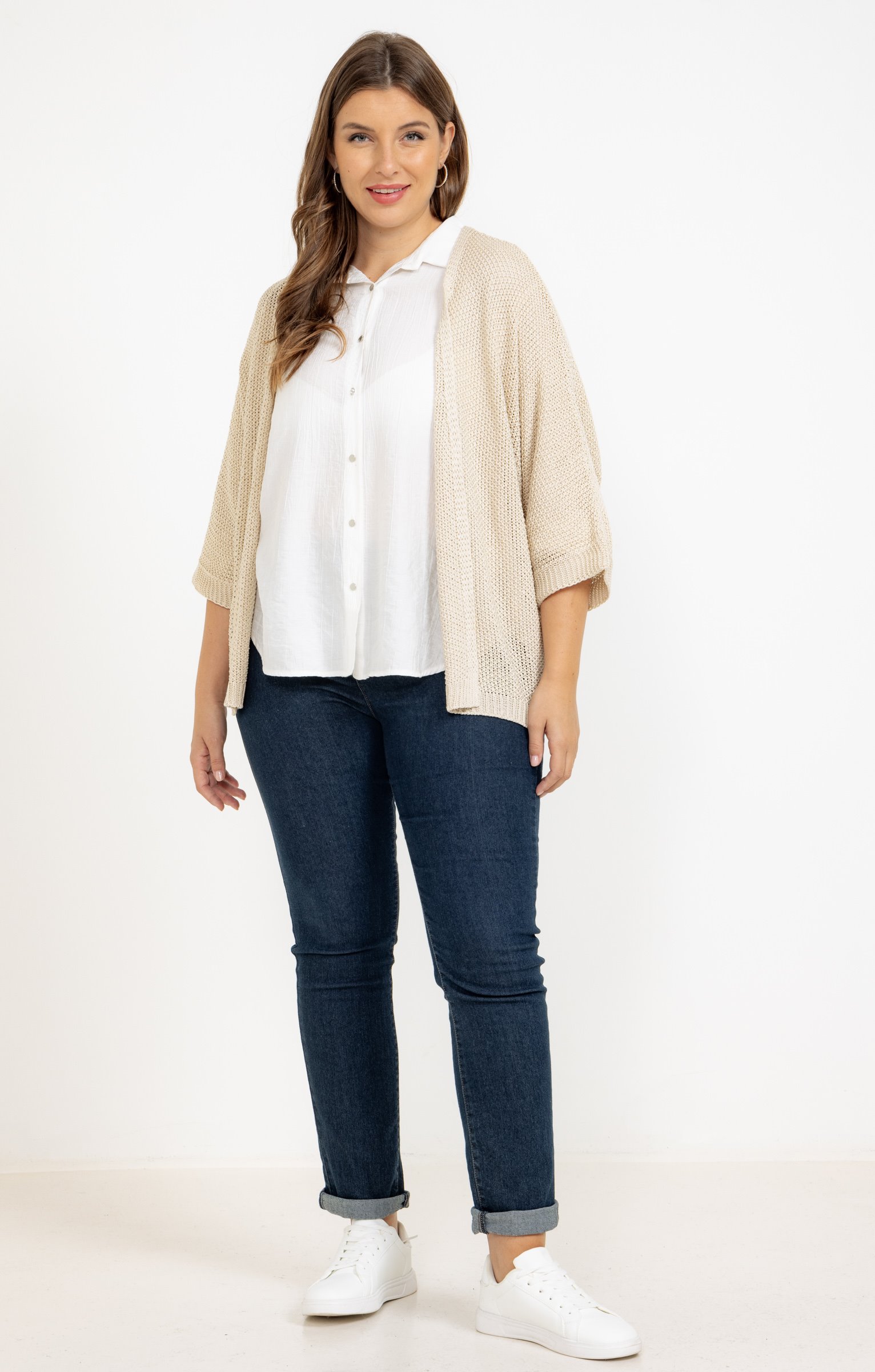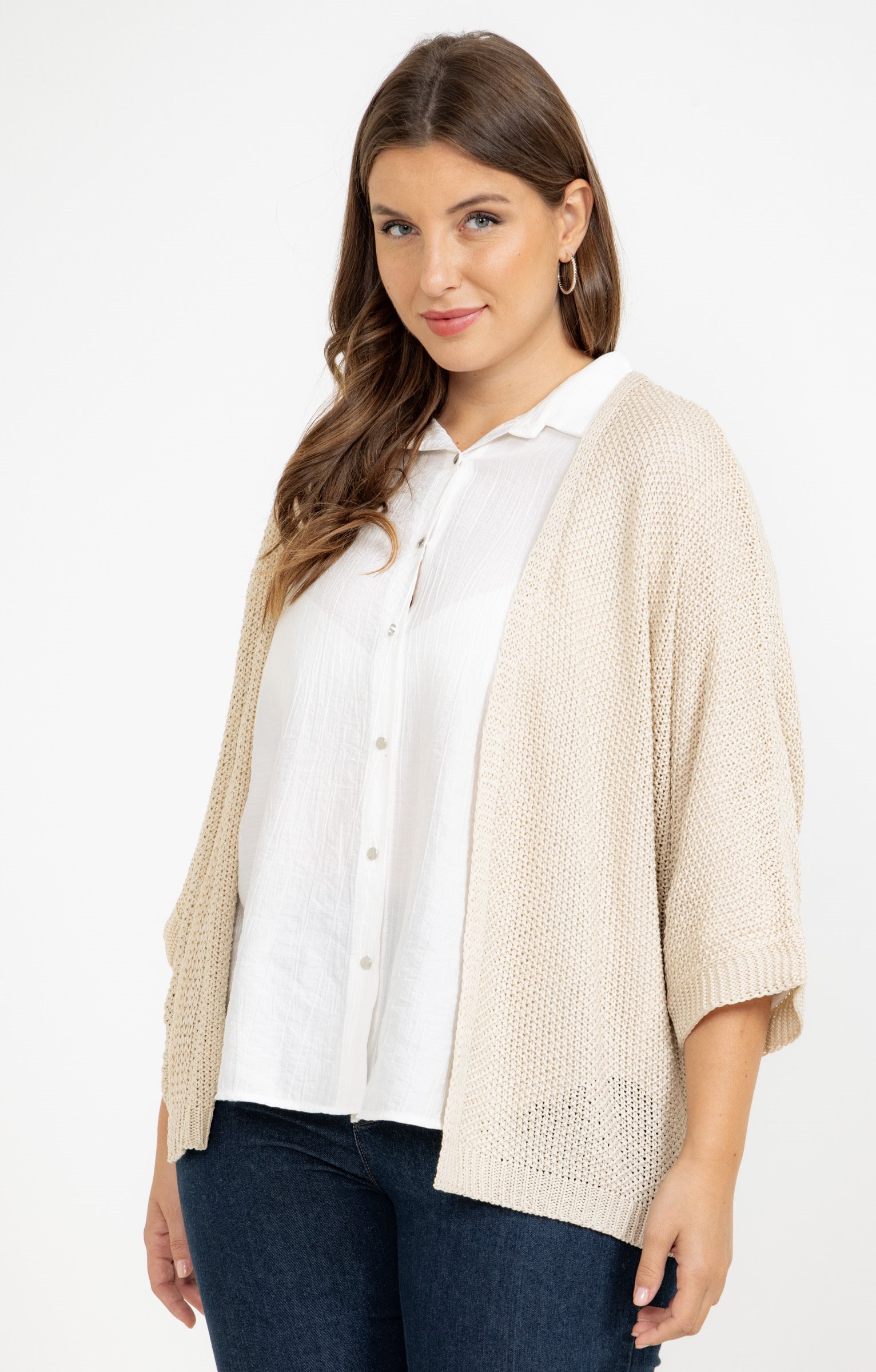 Notre mannequin Delia mesure 1m71 et porte un cardigan taille 1.