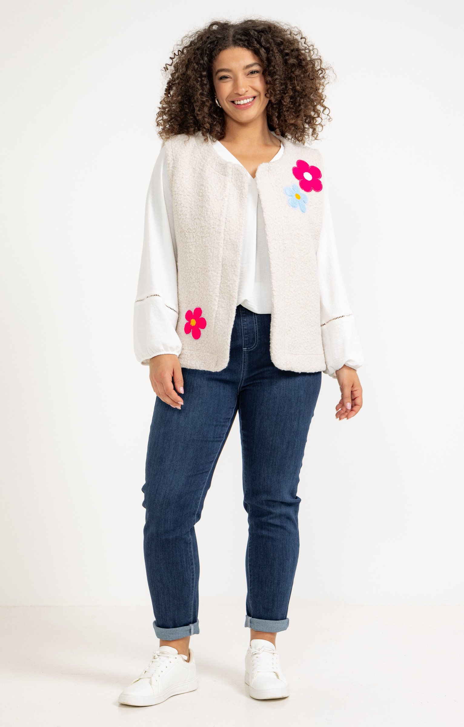 Pantacourt jean broderie fleurs