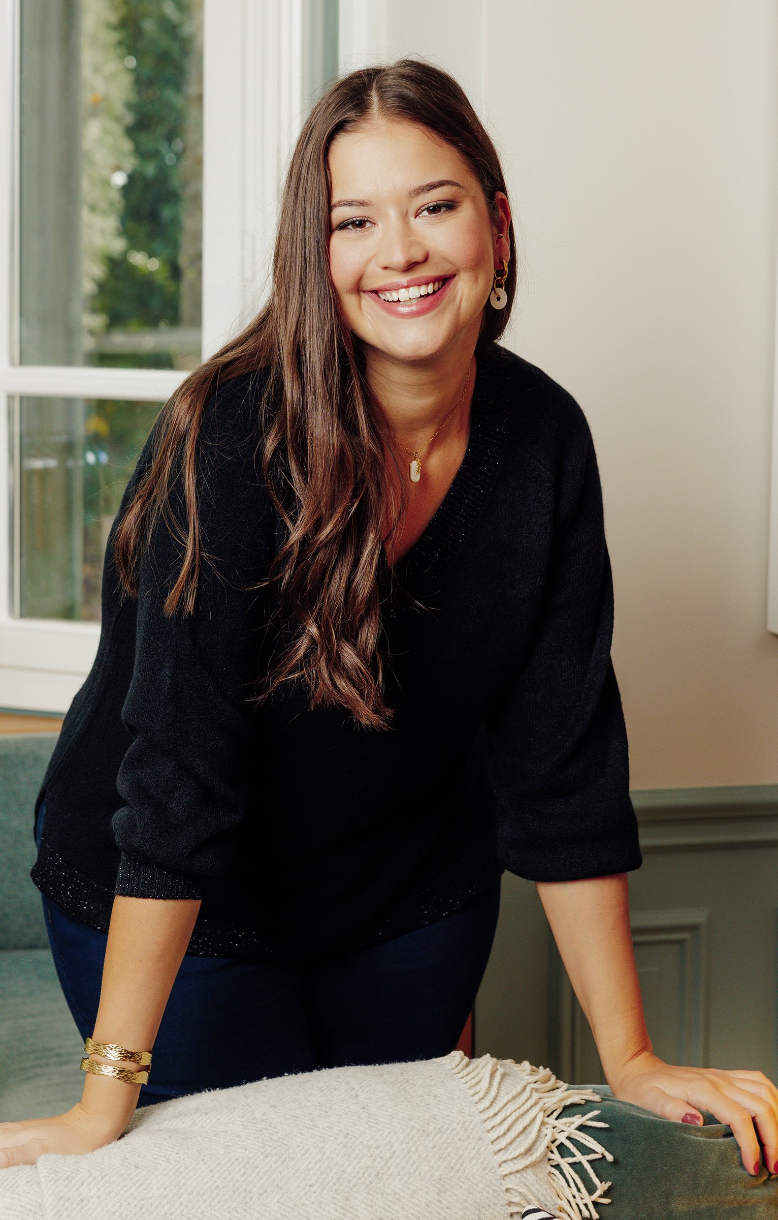 Notre mannequin Beatrice mesure 1m77 et porte un pull taille 1.