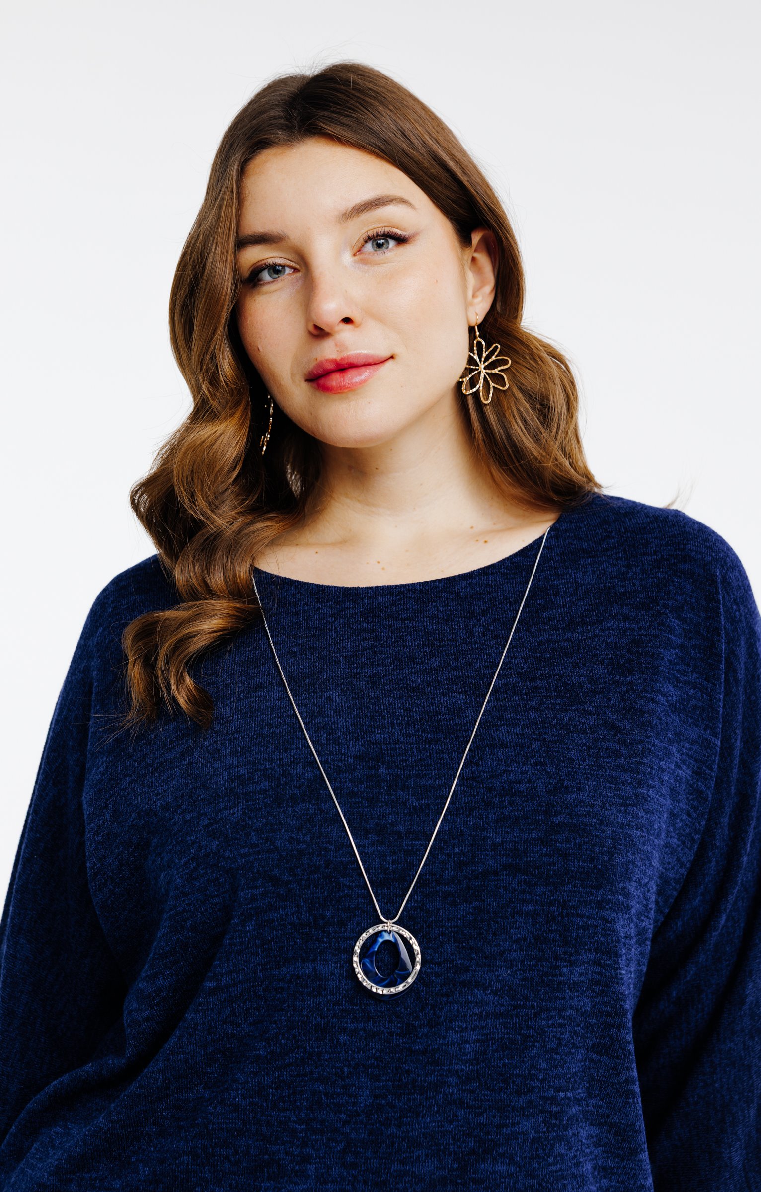 Sautoir argenté marine anneaux perles