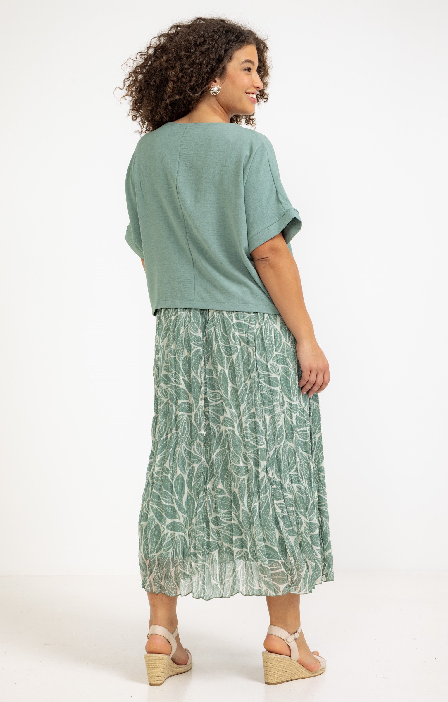 Notre mannequin Delia mesure 1m71 et porte une jupe taille 1.