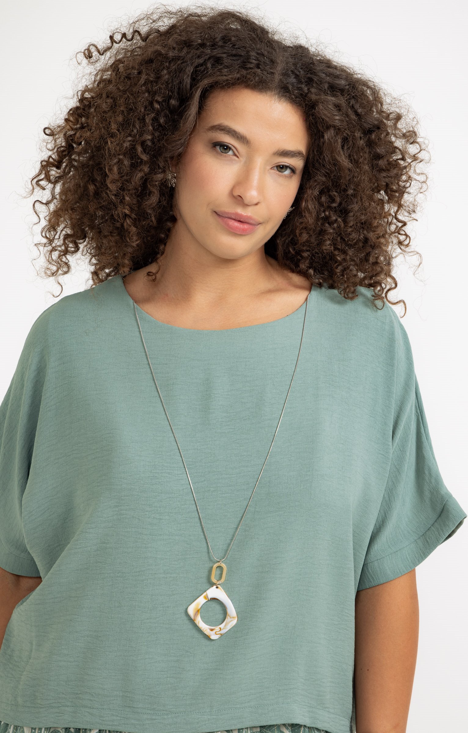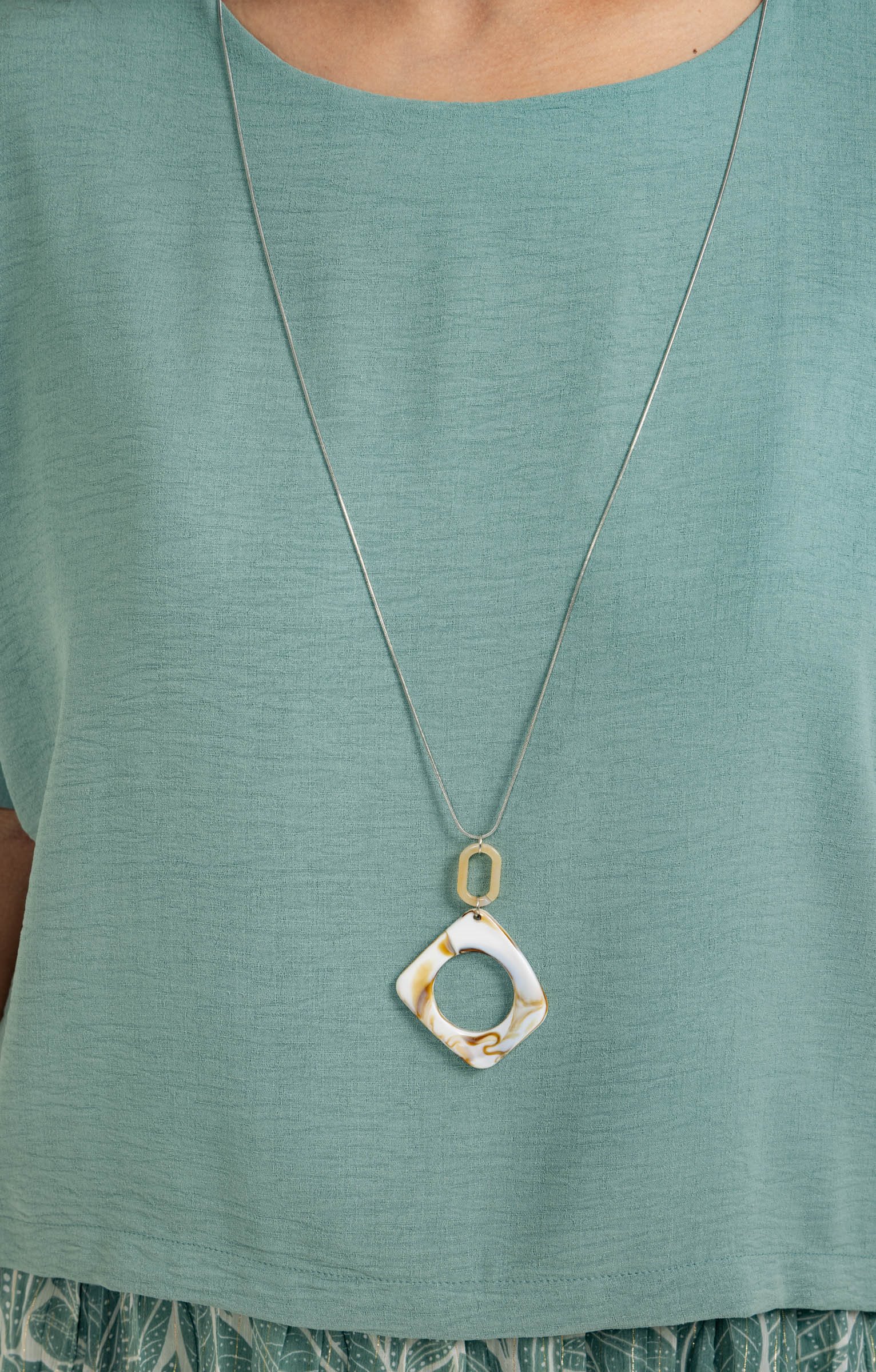 Robe 2-en-1 longue unie et à imprimé feuillage. Manches courtes. Haut uni et bas imprimé. Collier intégré pouvant être retiré. Coupe évasée avec un effet plissé. Longueur mi-mollet. Taille élastiquée pour un ajustement facile. Matière fluide.