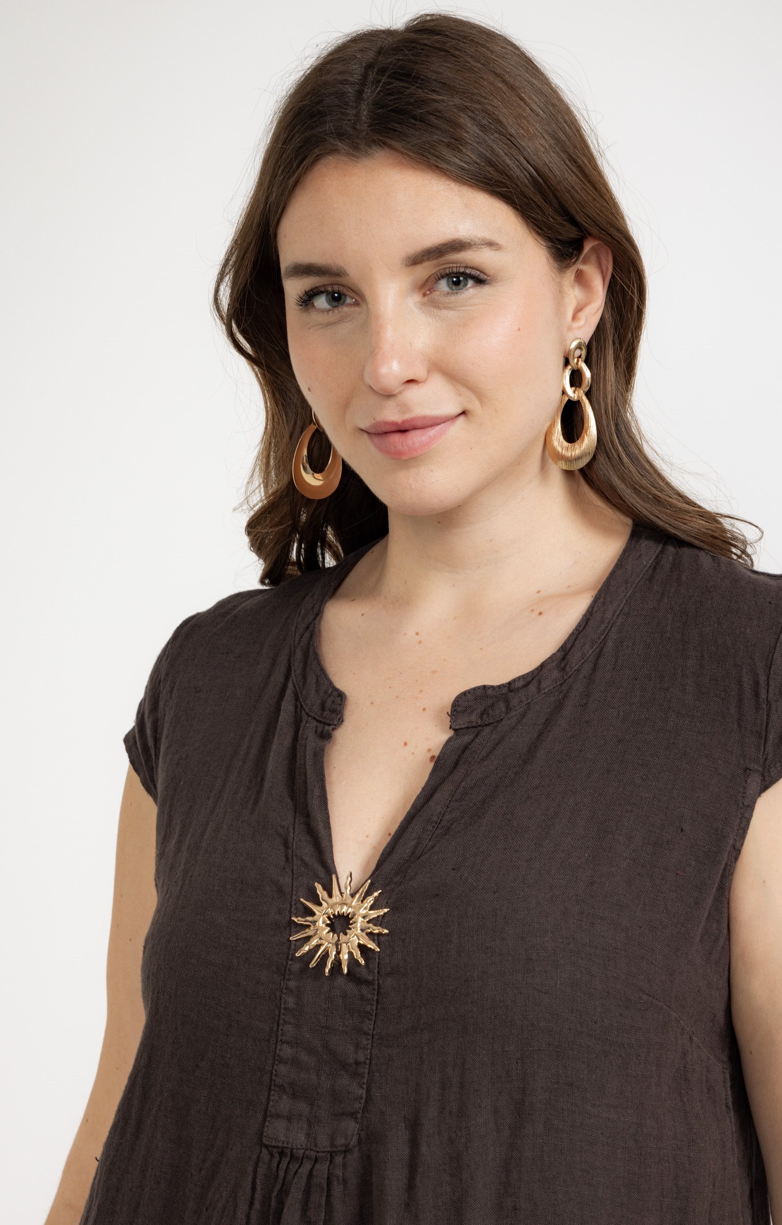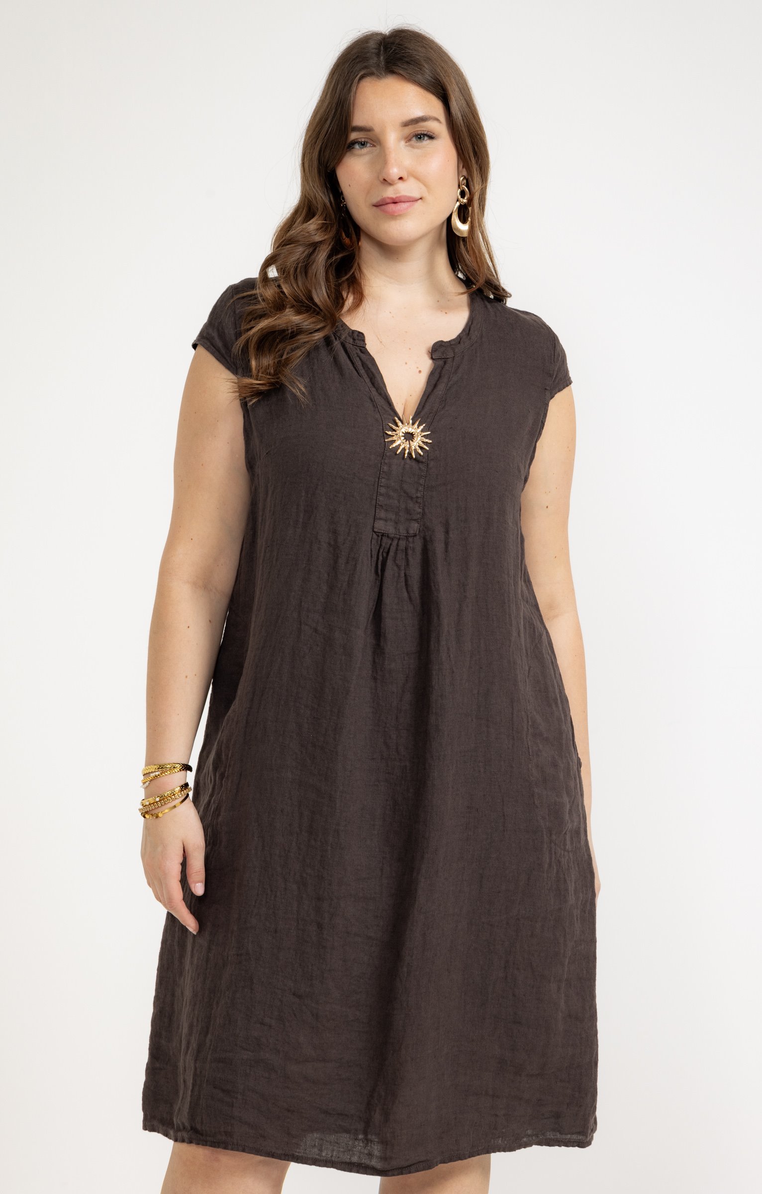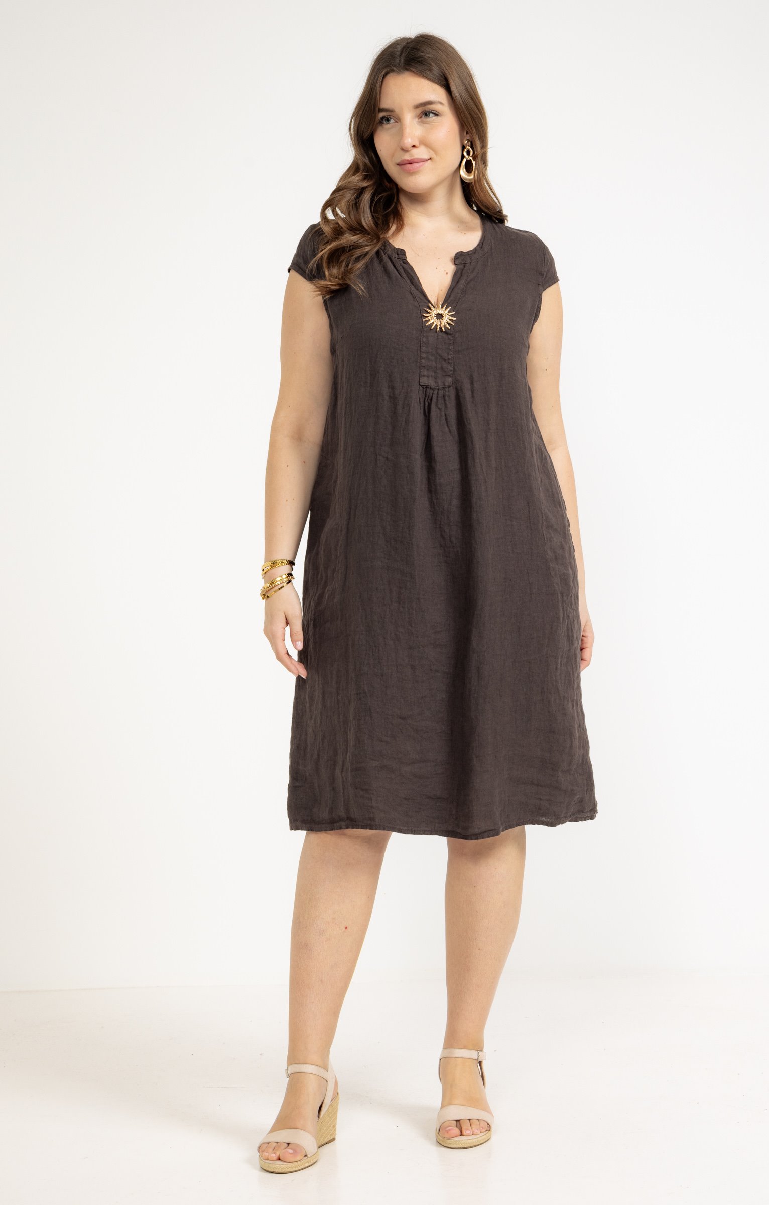 Robe en lin avec broche -