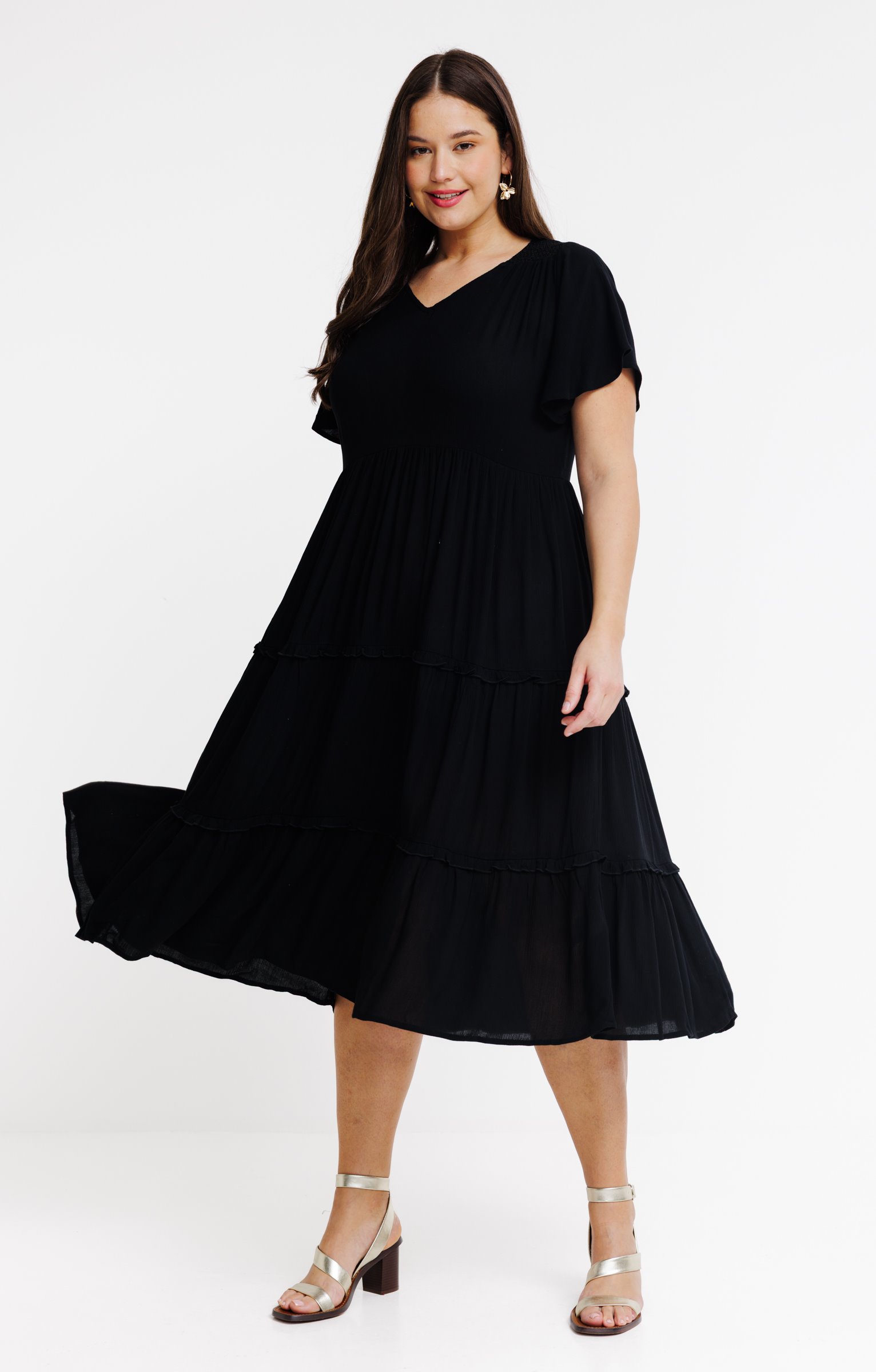 Robe longue évasée unie -