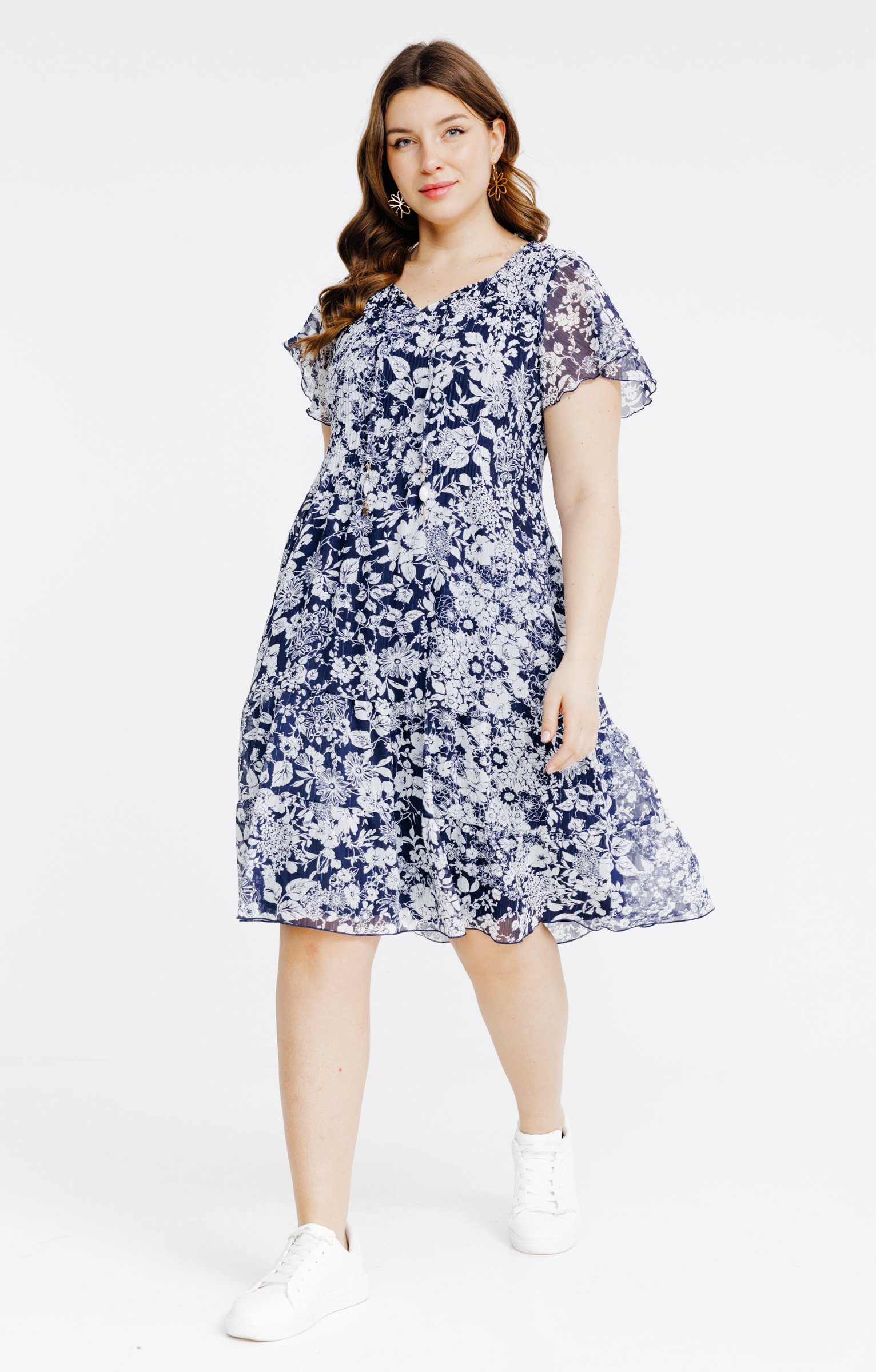 Robe plissée imprimée fleurs -