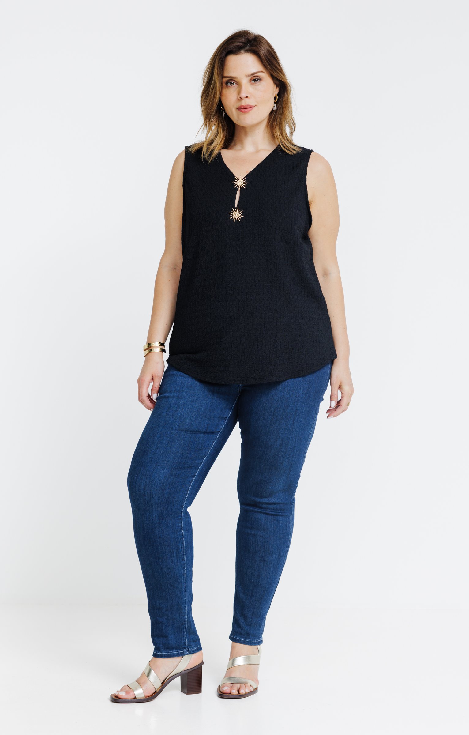 Débardeur uni avec boutons fantaisies -