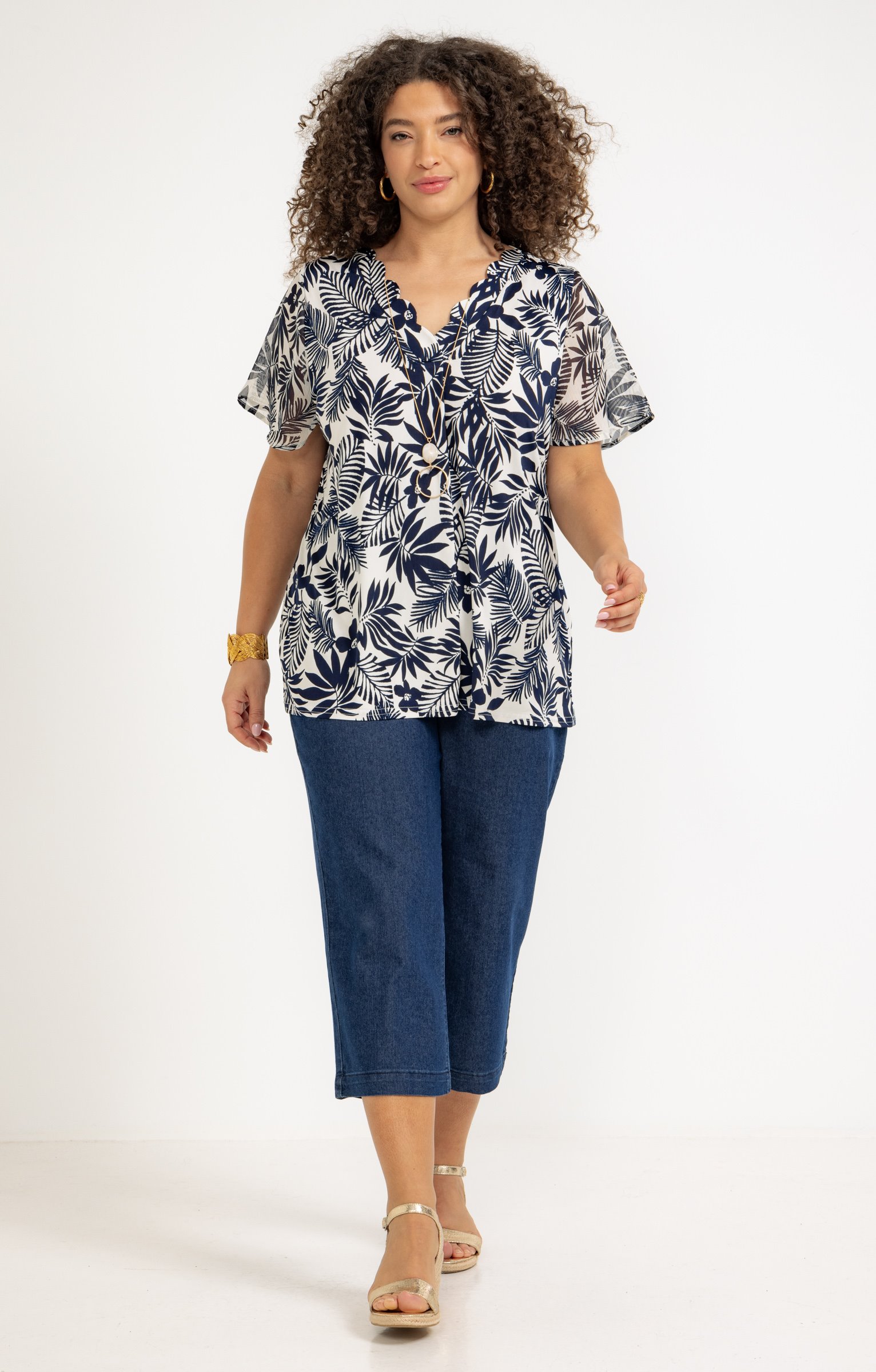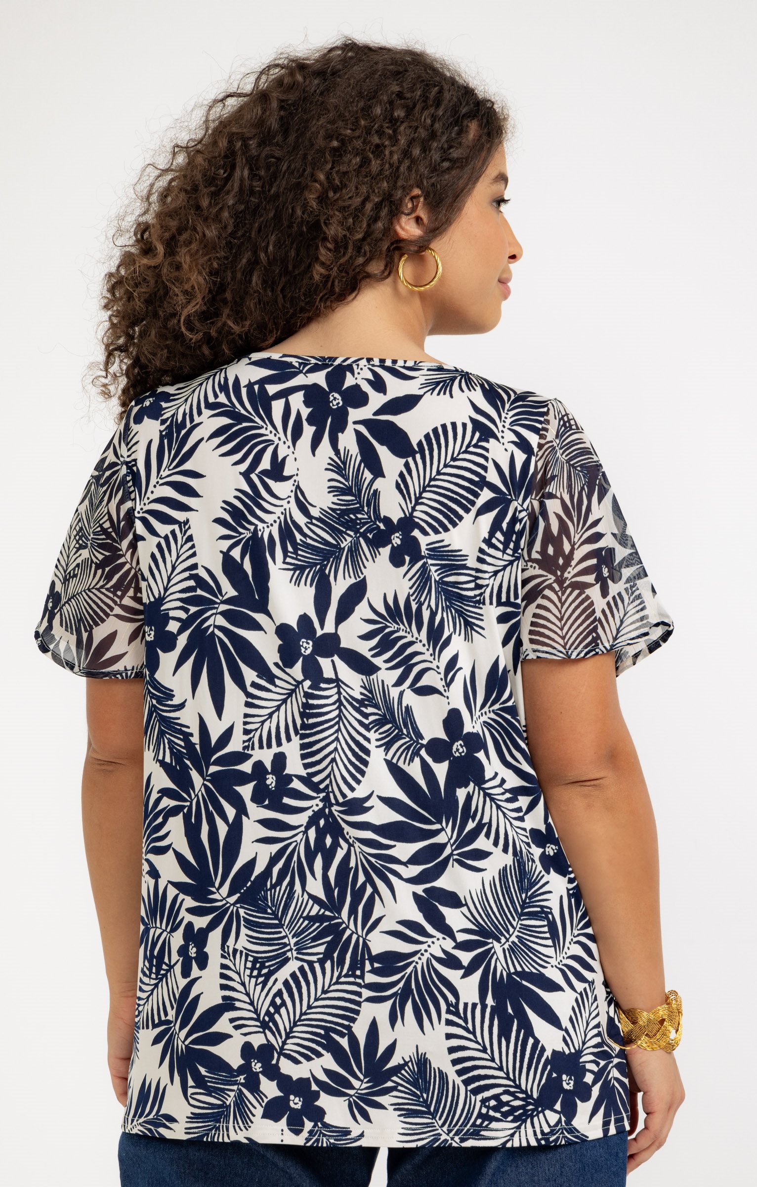 Notre mannequin mesure 1m71 et porte un chemisier taille 1.