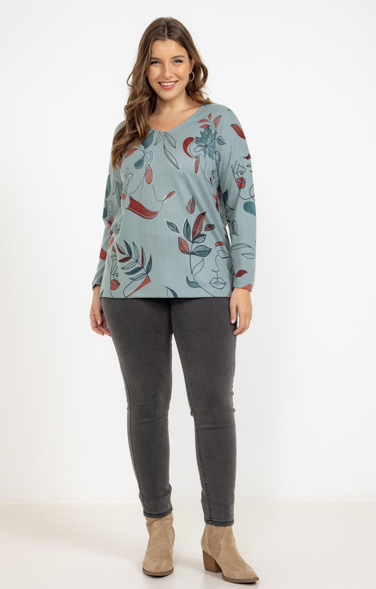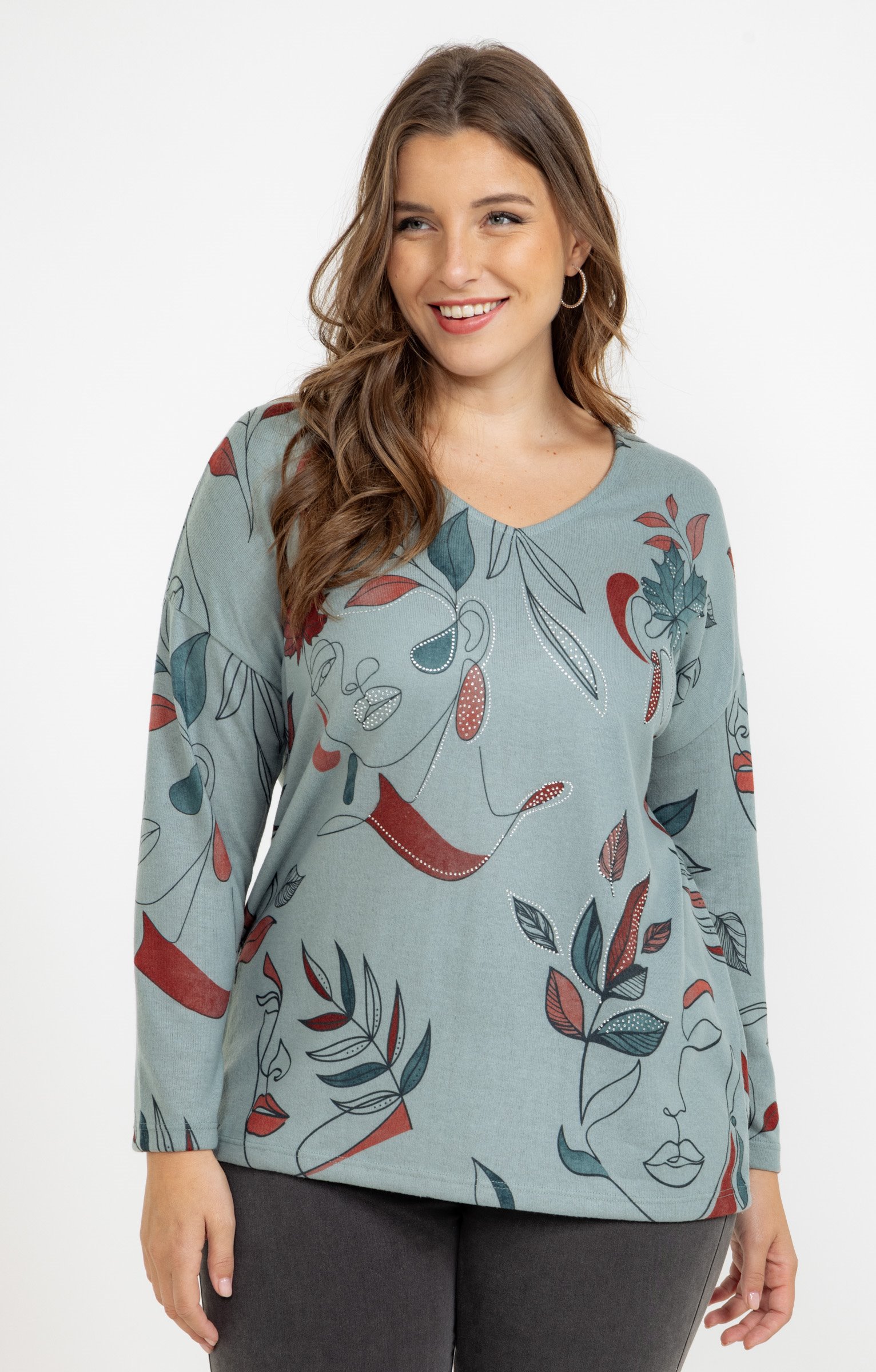 Tee-shirt maille chaude imprimé visages -
