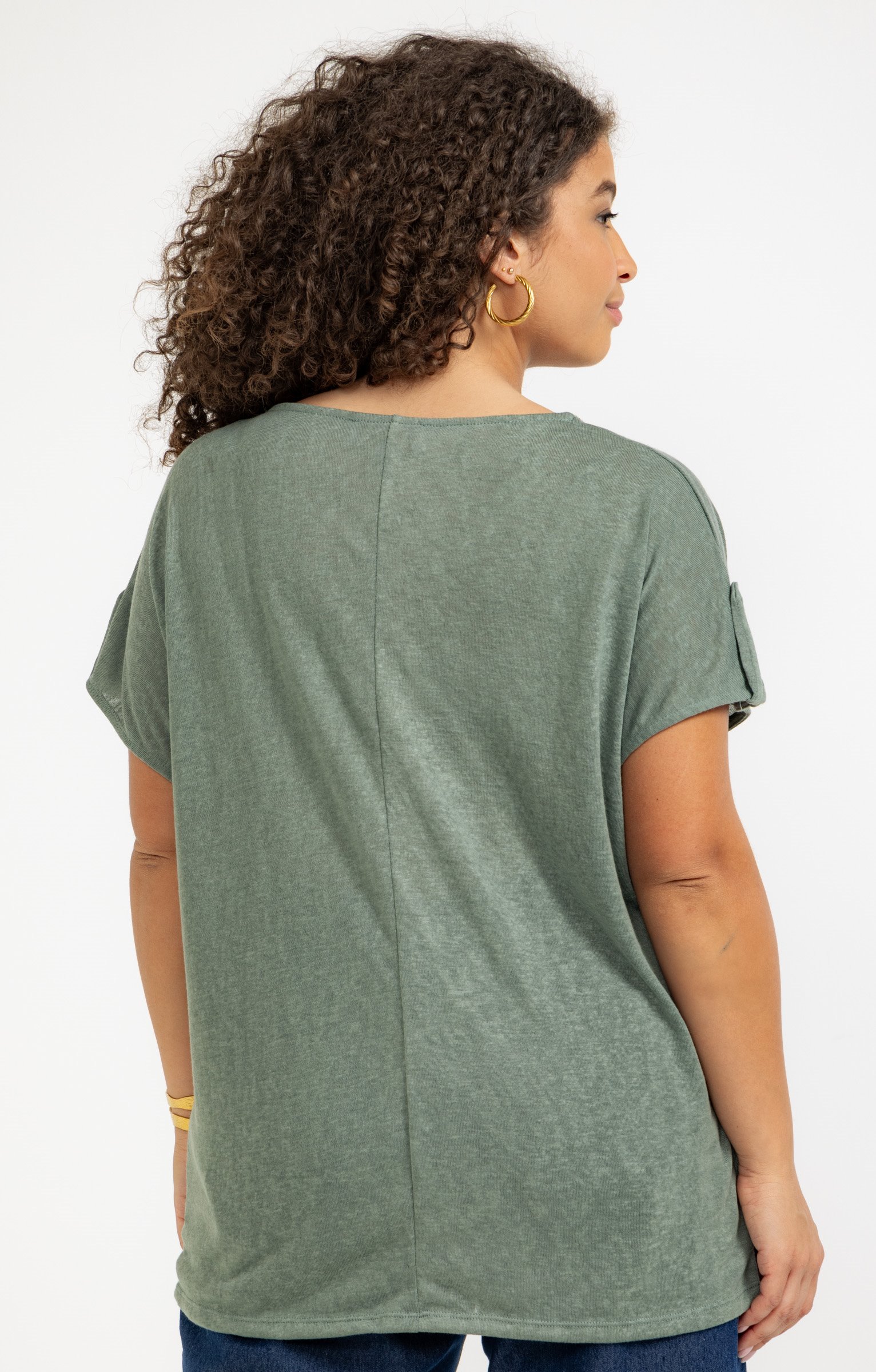 Tee-shirt uni col rond avec tresse -
