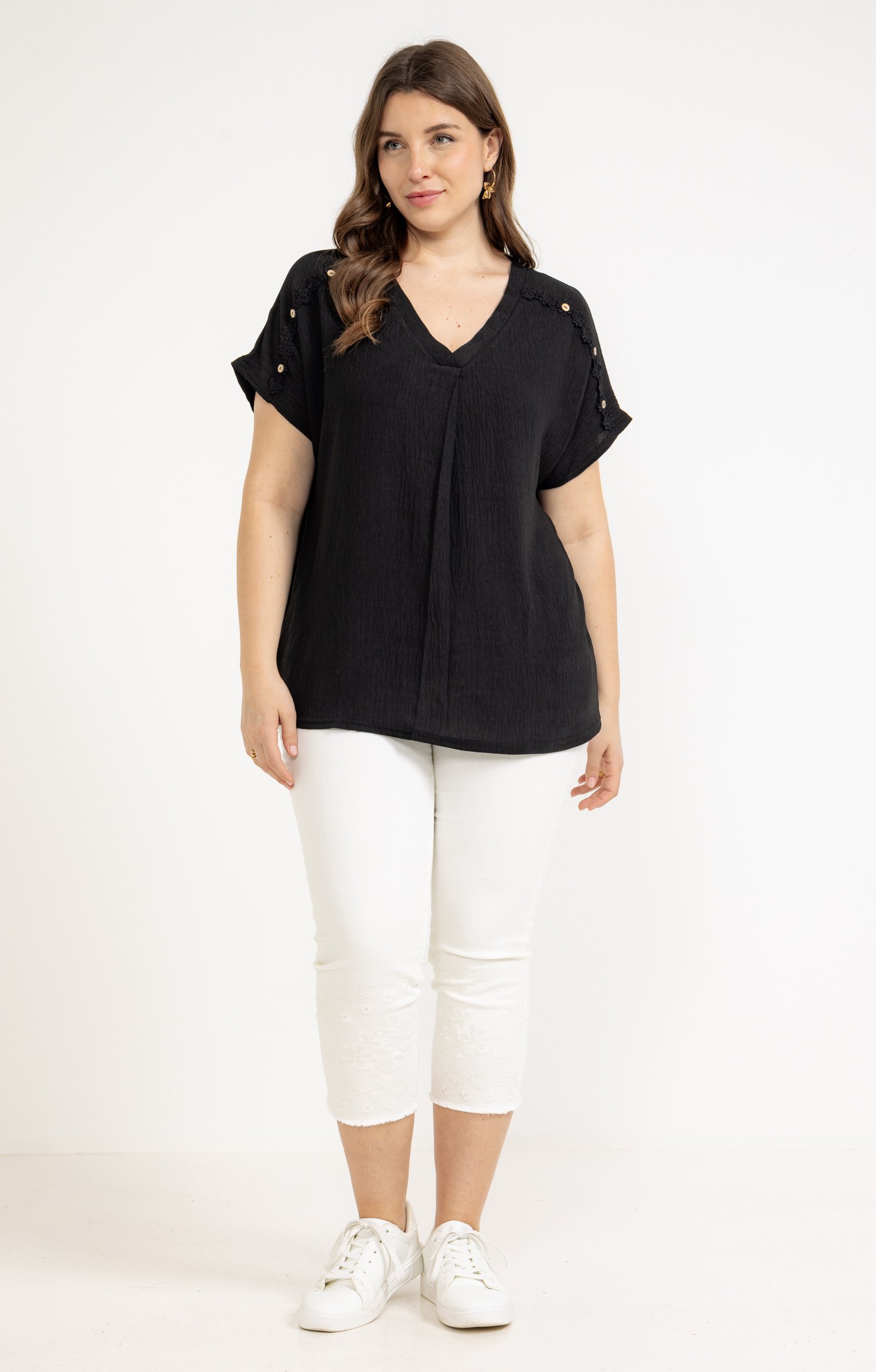 Pantacourt jean broderie fleurs
