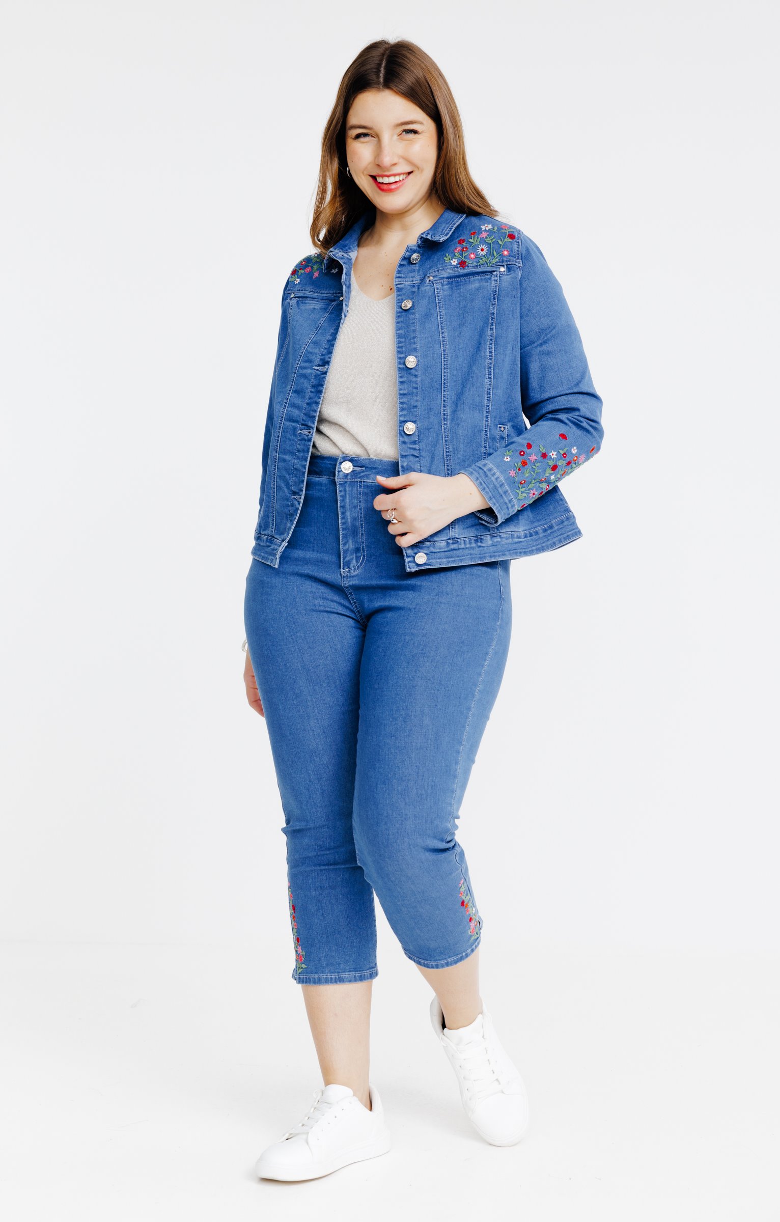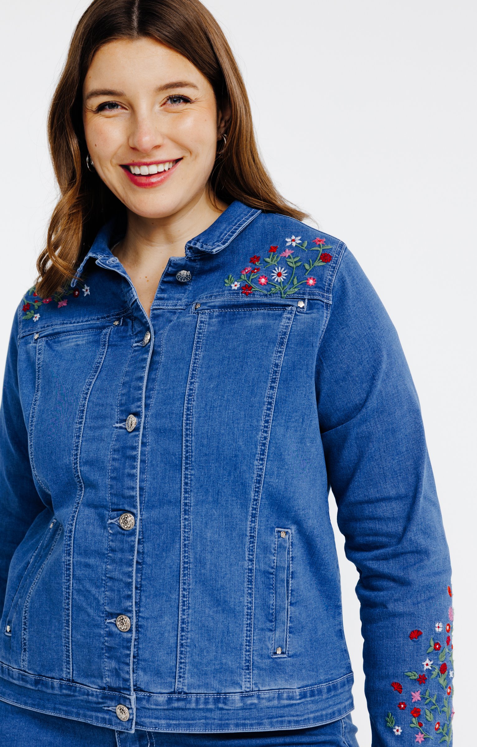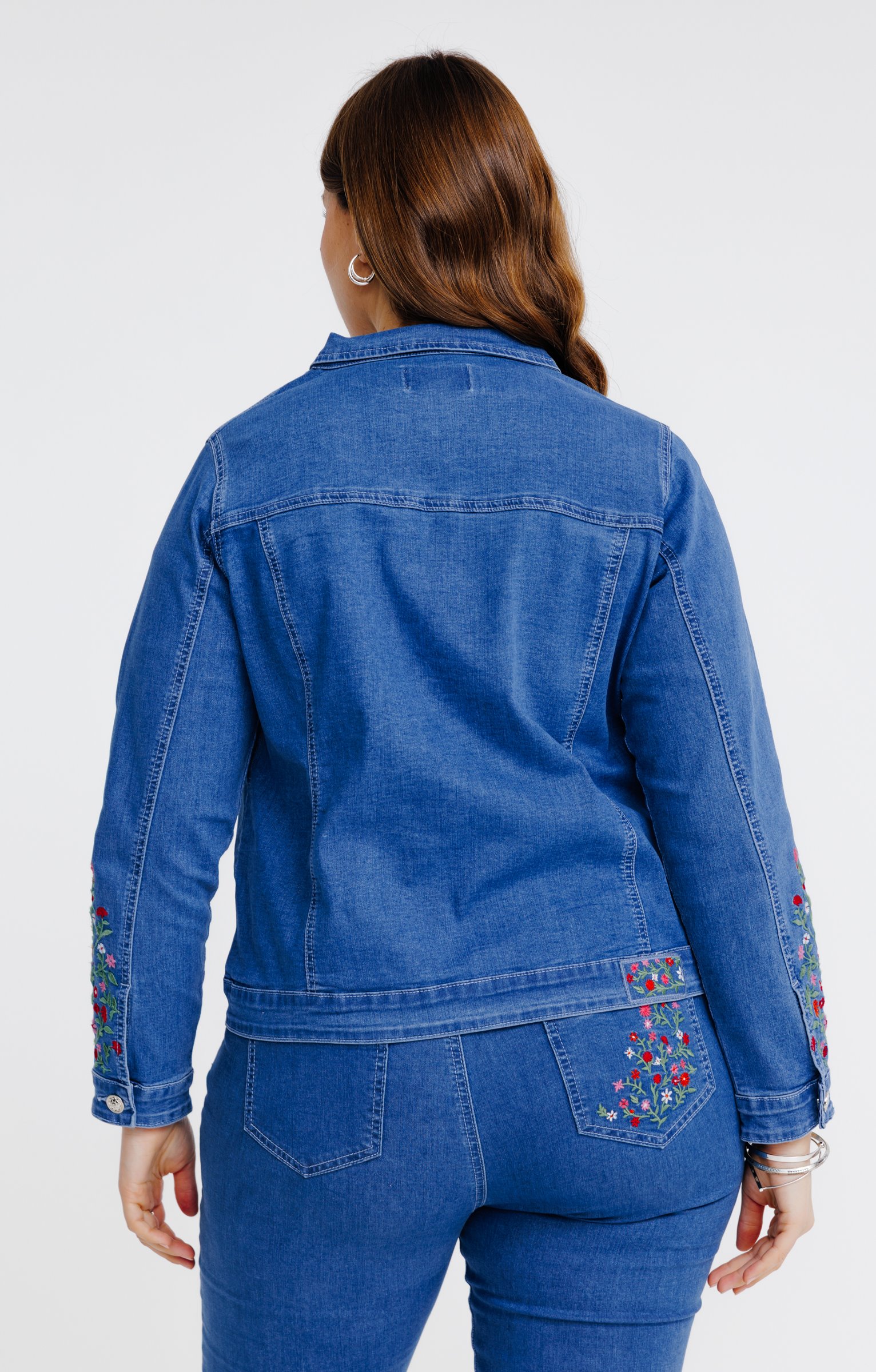 Veste en jean avec broderies fleurs -